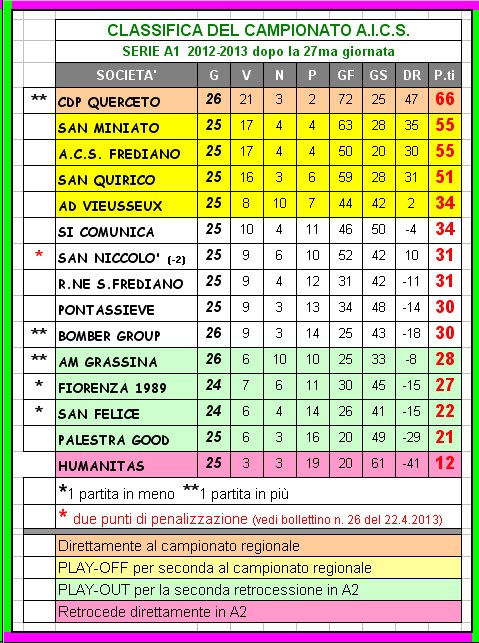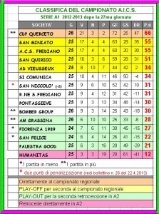 Il risultato lascia inalterata la situazione, con il Vieusseux ancora in vantaggio grazie alla migliore differenza reti, ma favorisce le numerose inseguitrici, tutte vittoriose, che si avvicinano sensibilmente. Sono almeno 6 le squadre che si contenderanno la 5a posizione.